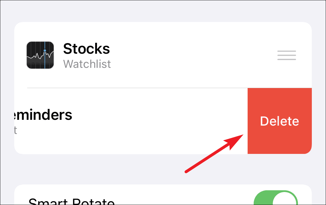 To remove a widget from a stack, swipe right on the widget and tap on ‘Delete’.