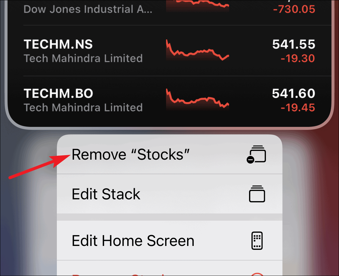 Tip: You can also quickly remove a widget from the stack using Home screen actions. Make sure that the widget you want to delete is the one currently being displayed on the stack. Now, tap and hold the stack to open the Home screen actions menu and select ‘Remove <Widget name>’