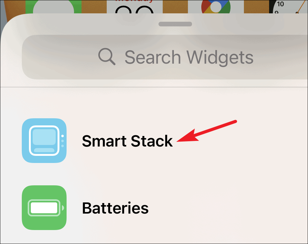 You can also create a new stack from the Widget Gallery. Scroll down in the widget gallery to find the ‘Smart Stack’ option and tap on it.