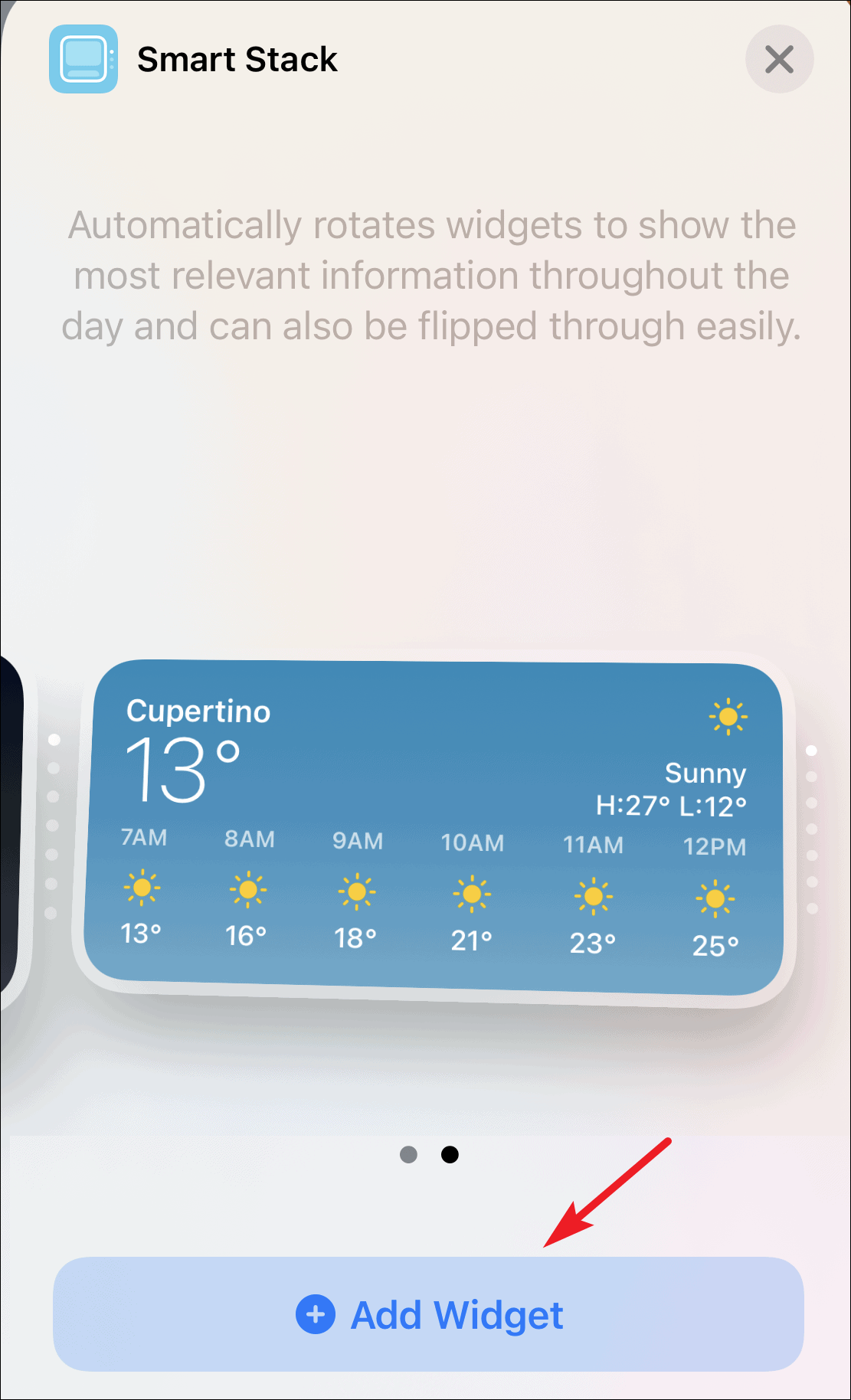 If a widget that you want to add to the stack is not present on your Home screen or Today view, you can add it from the Widget Gallery.