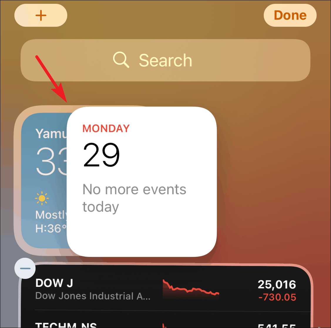 You can create a stack using the drag-and-drop method. Tap and hold a Widget until all the widgets start to jiggle. Now drag one widget on to the other to create a stack. You can add as many as 10 widgets in a single stack.