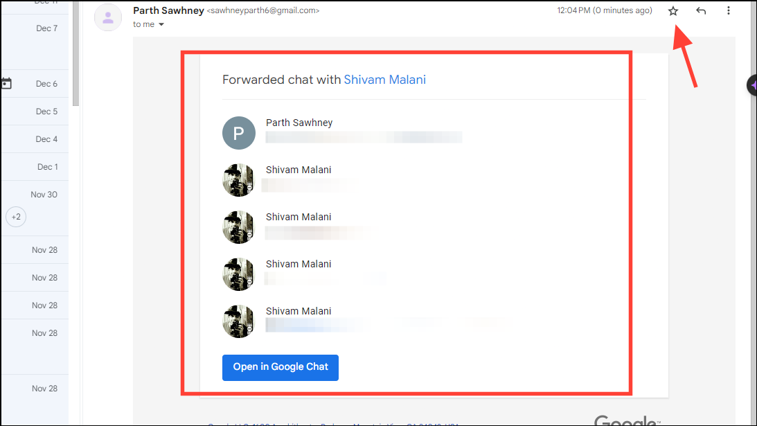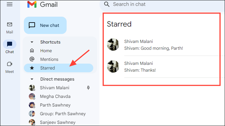 If you prefer to access your starred Google Chat messages directly from Gmail, follow these steps: