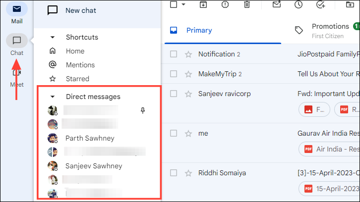 Step 2: Navigate to the conversation containing the message you wish to save. If you're in Gmail, hover over the 'Chat' tab on the left sidebar and select the conversation.