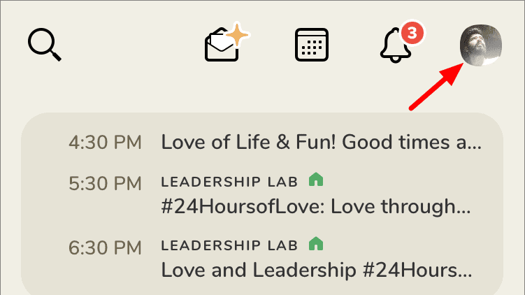 To get started, open the Clubhouse app and tap on your photo or initials at the top-right corner.