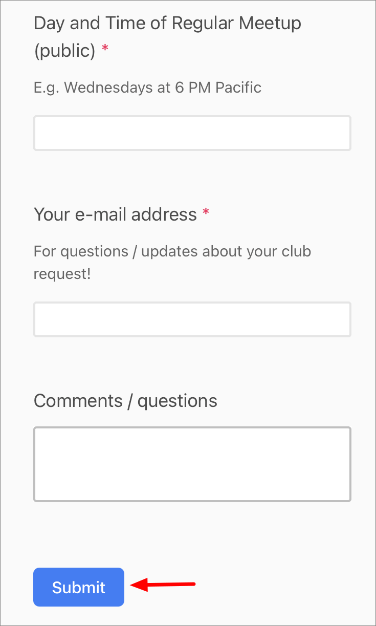 Now, mention the day and time of weekly meetups that you will be organizing. This helps club members and followers know well in advance of a meetup and prioritize other tasks accordingly to make it to the meetup.
