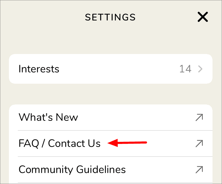 In Settings, look for ‘FAQ / Contact Us’ and tap on it.