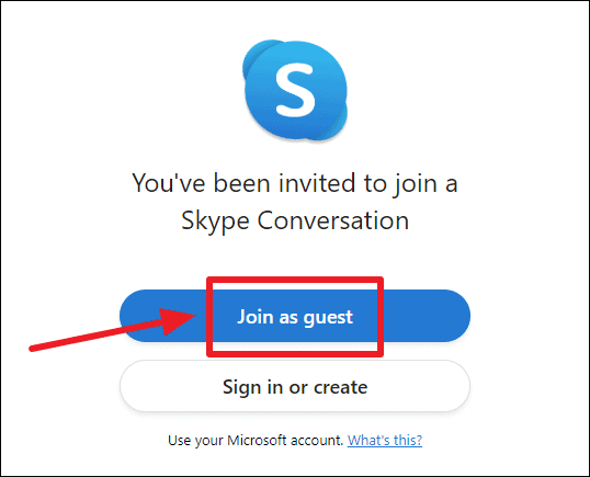 Step 5: You will be prompted to either 'Join as guest' with a temporary account or sign in with your Skype account. To proceed without signing in, click on the 'Join as guest' button.