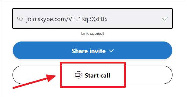 Step 4: After sharing the invitation link, click on the 'Start call' button to initiate the meeting.