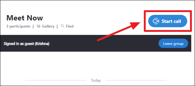 Note: If you don't see the 'Join as guest' option after clicking 'Start call', refresh the page or access the meeting using the invitation link. This should bring up the 'Join as guest' option.