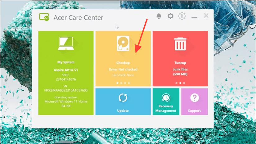 - Open the Acer Care Center application on your laptop. If you do not have it installed, find the steps to download it here.