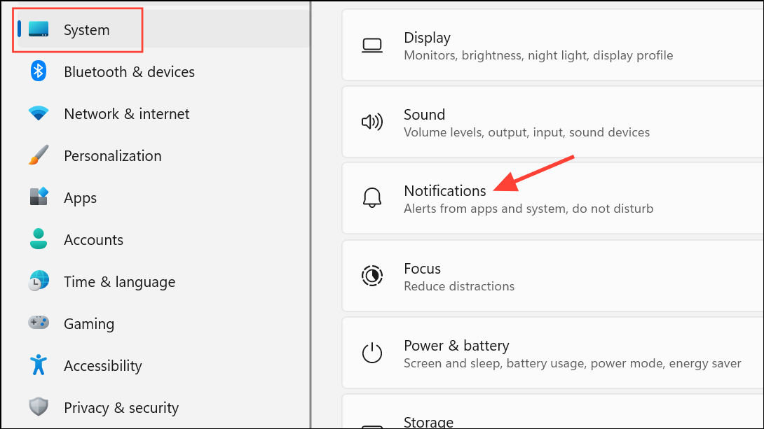 Step 1: Open the Start menu and select Settings. Click on System, then Notifications.