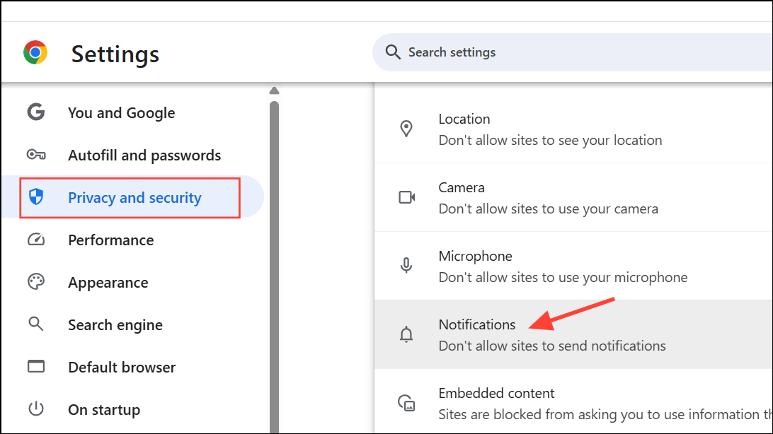 Step 2: Then go to Privacy and security > Site settings > Notifications.