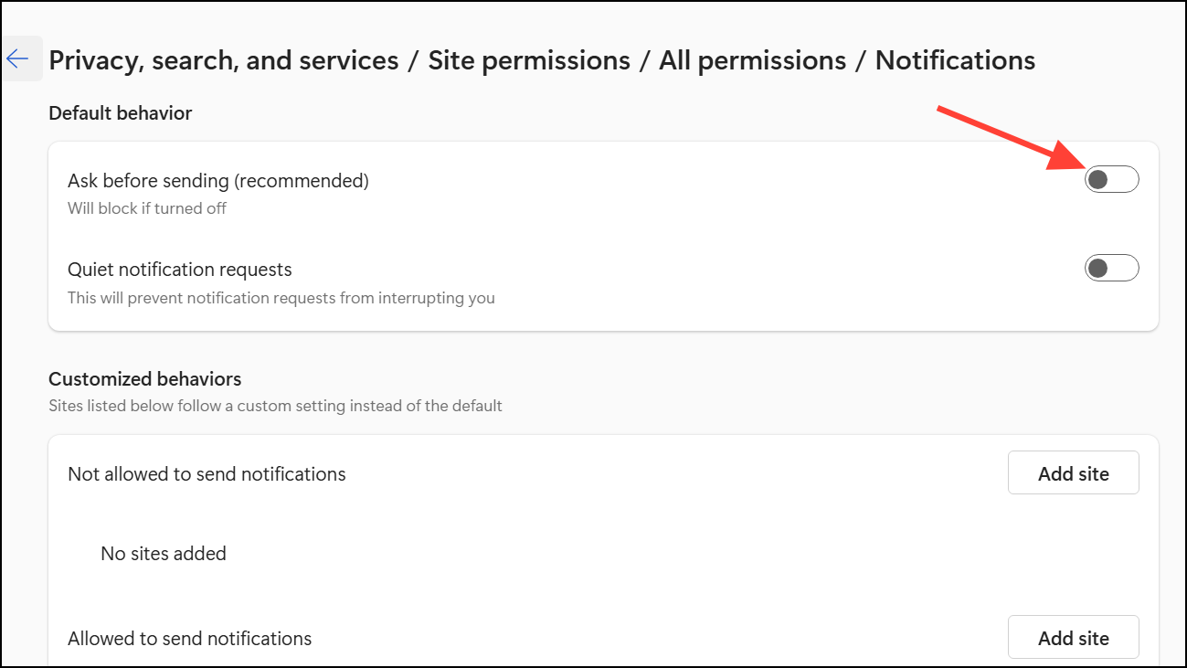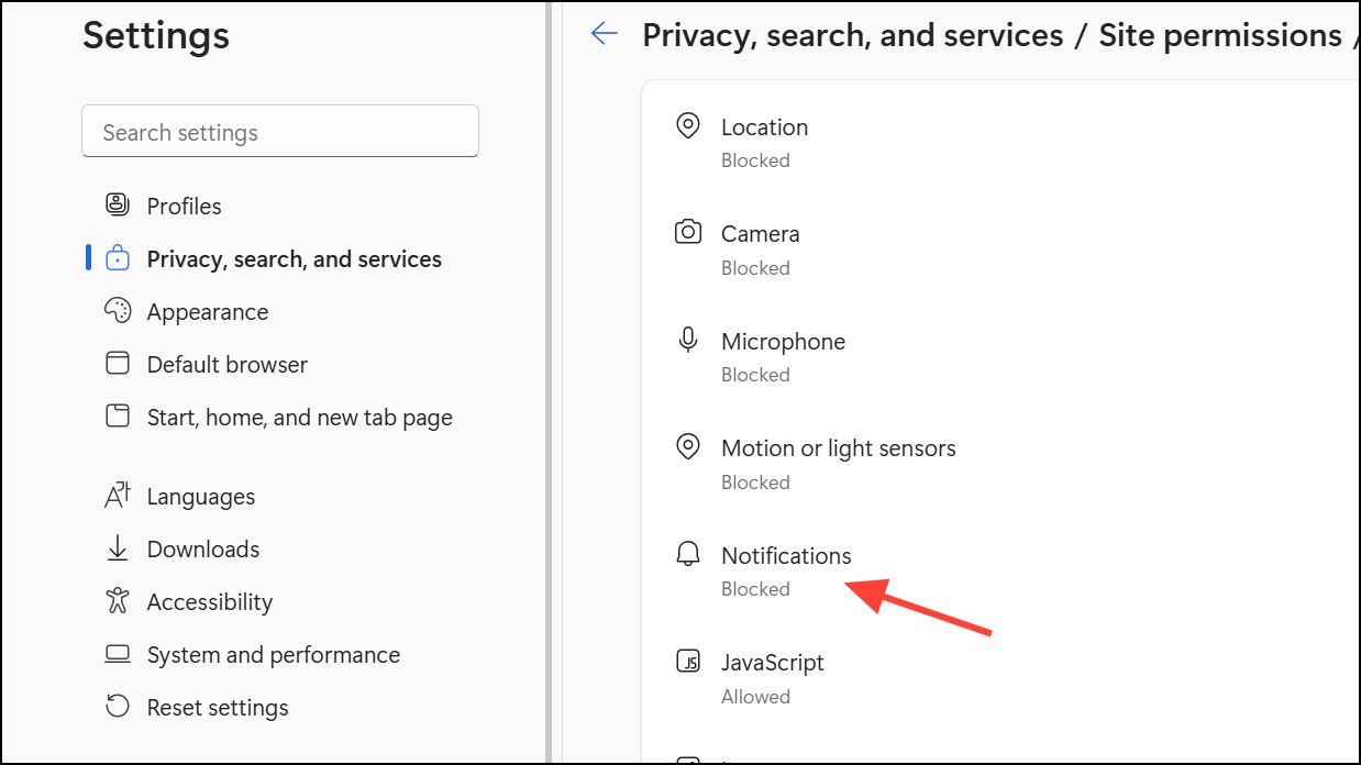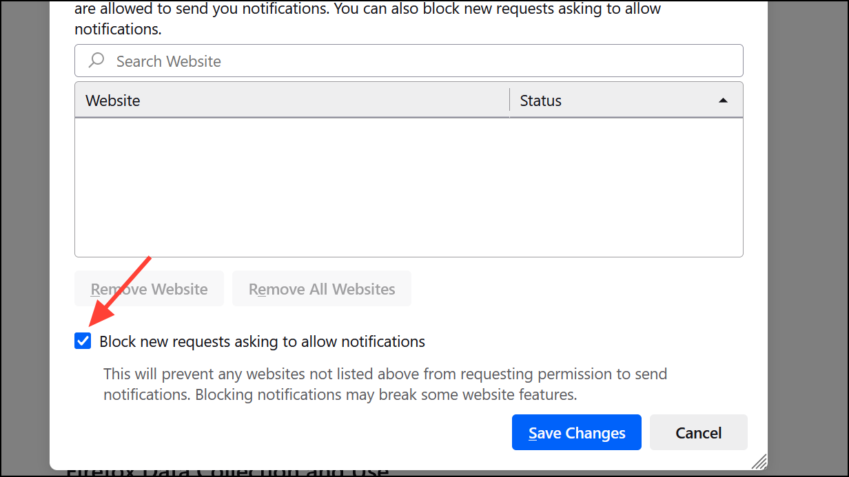 Step 9: For other browsers like Firefox or Safari, access their notification and pop-up settings and block unwanted sites in a similar way.