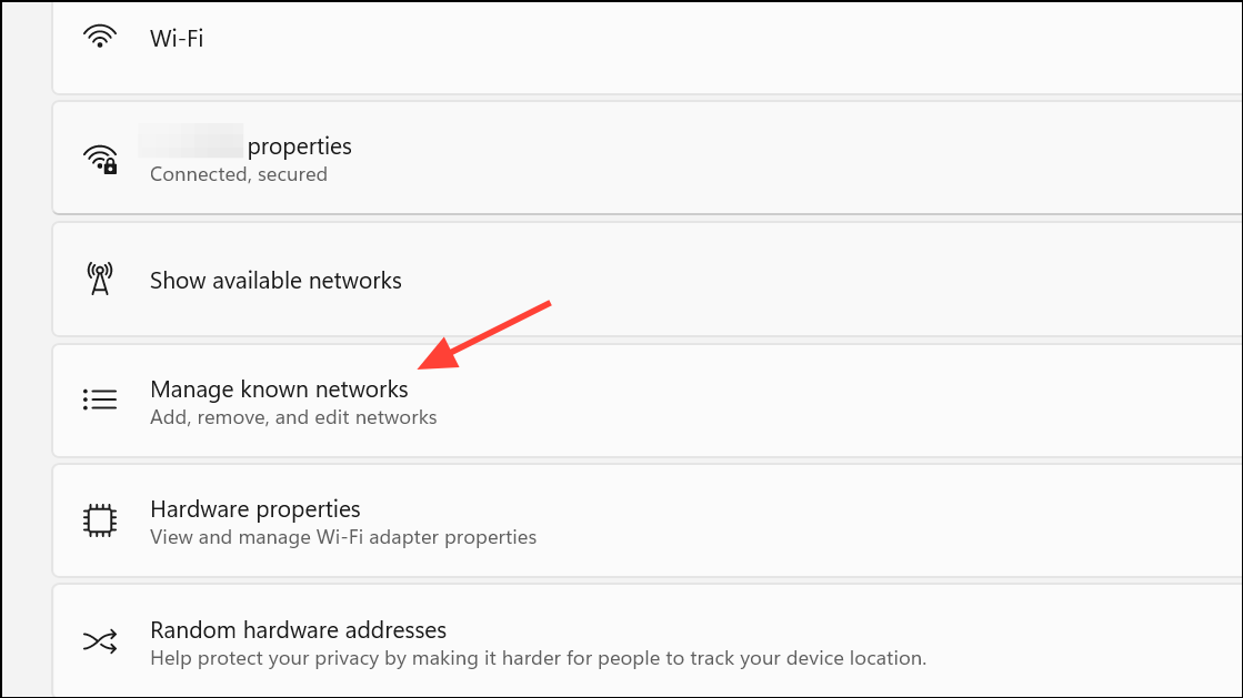 Step 3: Click on Manage known networks. This section lists all Wi-Fi networks your PC has previously connected to.