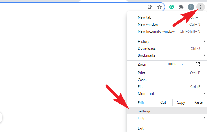 Then, from the Chrome window, click on the kebab menu (three vertical dots) present on the top right corner of your screen and click then click to select the ‘Settings option from the overflow menu.