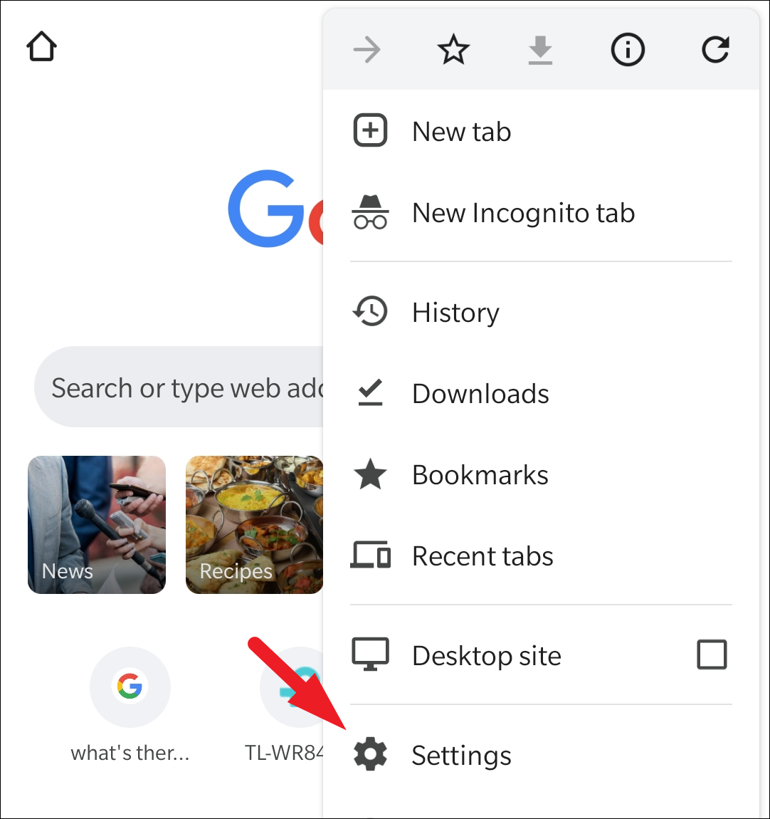 Then, tap on the ‘Settings’ option present in the overflow menu.