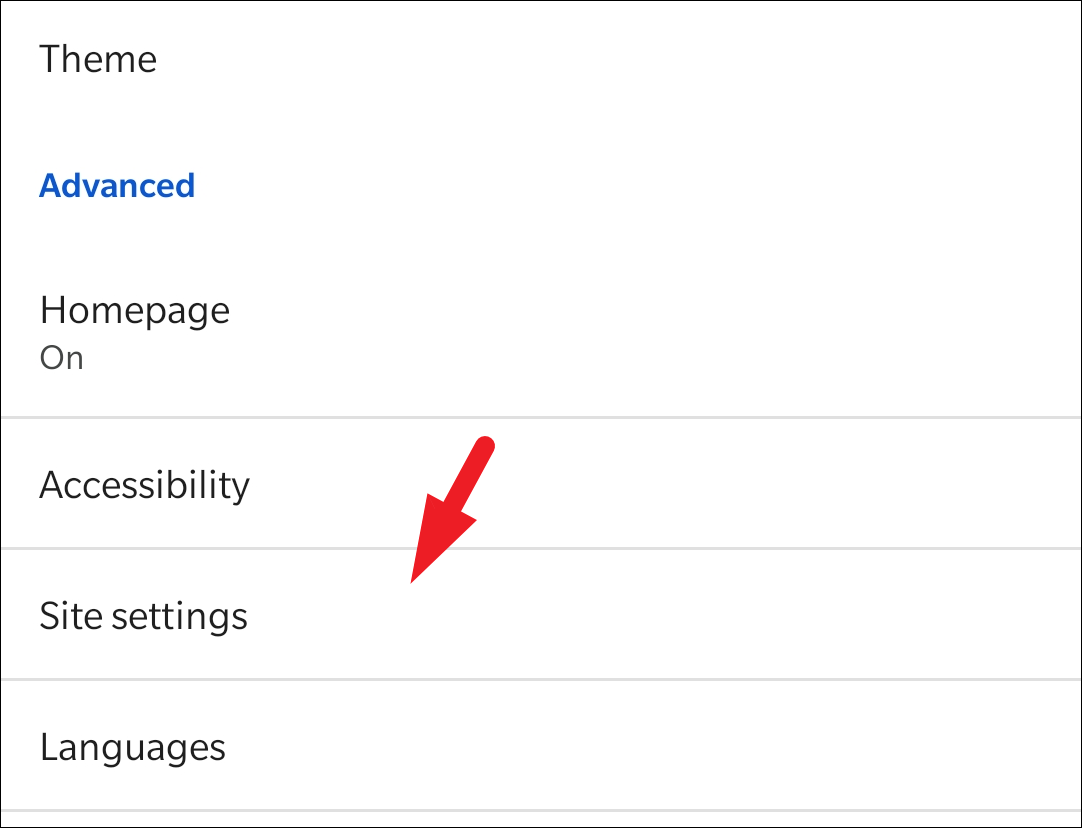 Next, scroll down on the page and under the ‘Advanced’ section, locate the ‘Site Settings’ option and tap on it to continue.