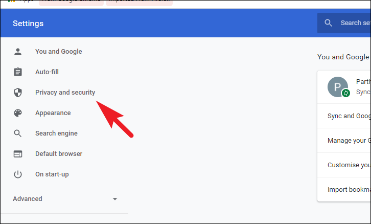 On the settings screen, click on the ‘Privacy & security’ tab present on the left sidebar to proceed.