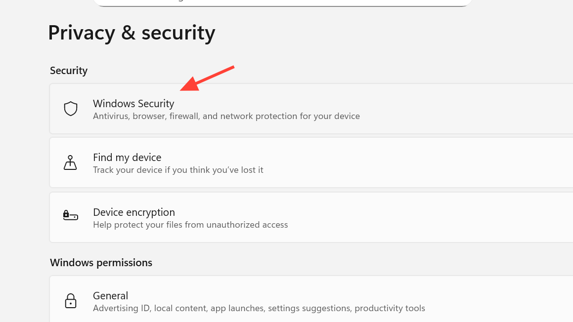 Step 1: Open Settings (Windows Key + I), then go to Windows Security.
