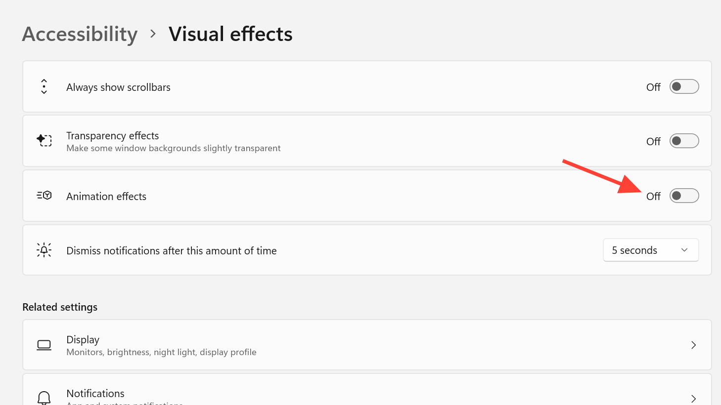 Windows + Ito open Settings. - Go to Accessibility > Visual effects.