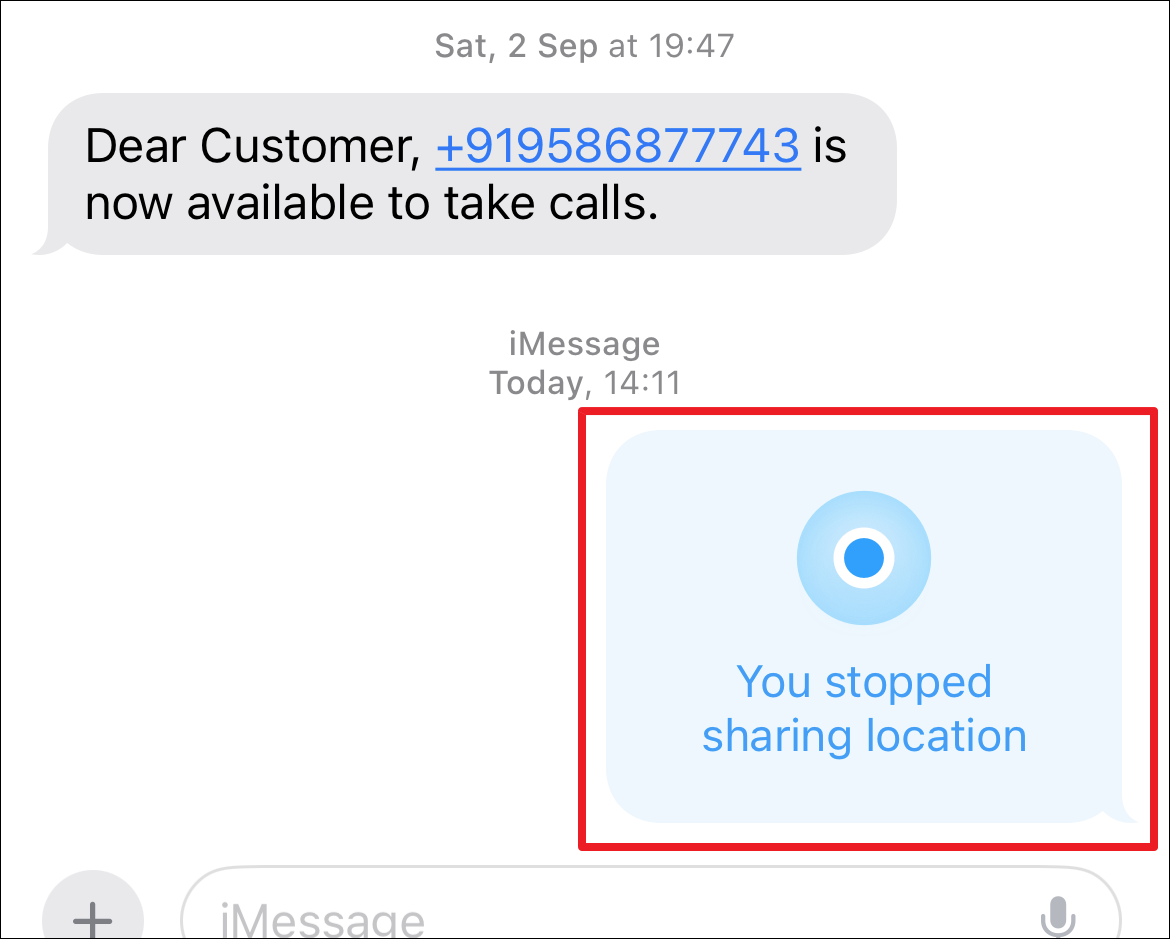 Once you have ended the location sharing, the location thumbnail will display the same in the conversation thread.