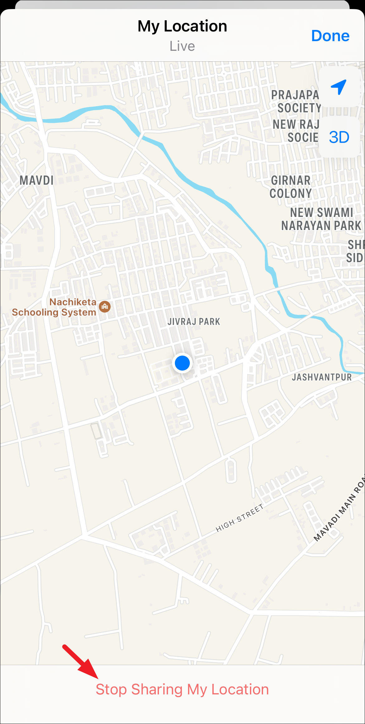 - Next, tap on 'Stop Sharing location' at the bottom of the screen.