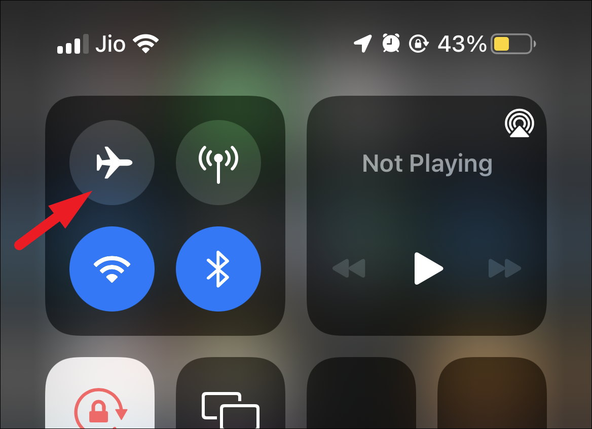 - Then, tap on the 'Airplane' icon to turn on the Airplane mode.