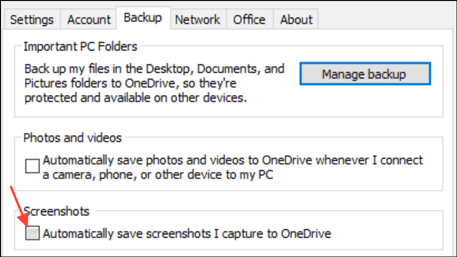 Turn Off OneDrive Screenshot Auto-Save