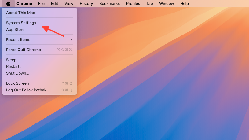 Step 1: Click on the Apple menu in the top-left corner of your screen and select System Settings (or System Preferences in older macOS versions).