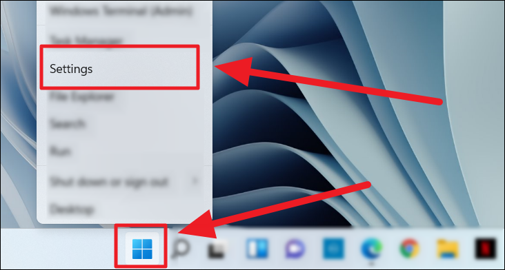 You can also right-click on the ‘Start’ (windows) icon on the taskbar and select ‘Settings’ from the menu.