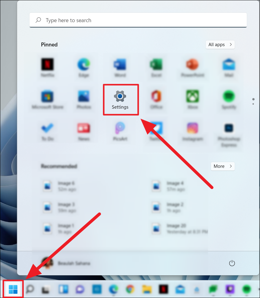 Launch the ‘Settings’ app on your computer by holding Windows and I on your keyboard. You can also click the ‘Windows’ or ‘Start’ button on the taskbar and select ‘Settings’ from the ‘Pinned’ items.