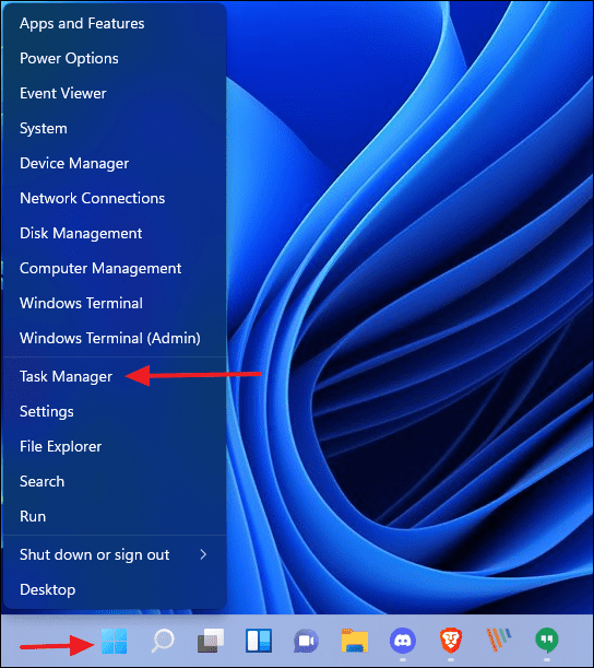 Task Managerby right-clicking theStartbutton and selectingTask Manager, or by pressingCtrl+Shift+Escon your keyboard.