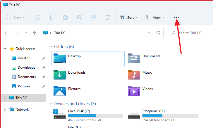 File Explorerwindow, click the three dots (also known asSee more) in the toolbar.