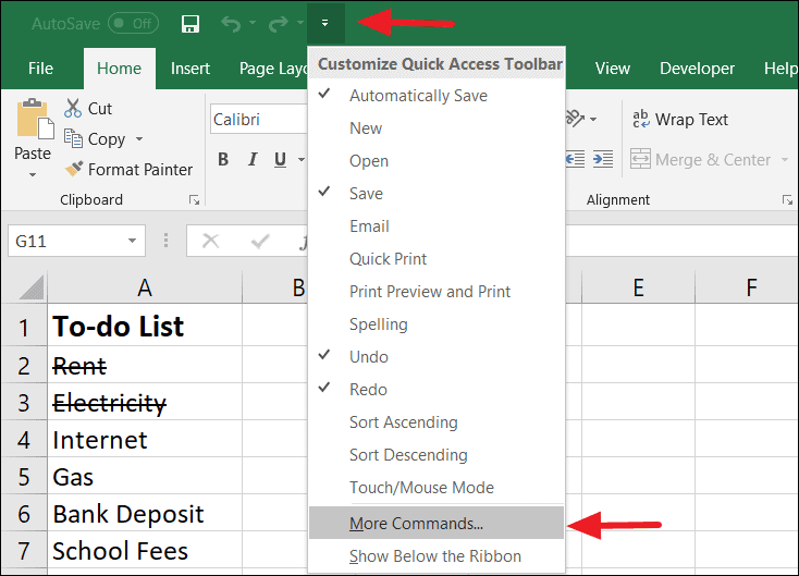Adding a strikethrough button to the Quick Access Toolbar (QAT) provides quick access to this formatting option with a single click.
