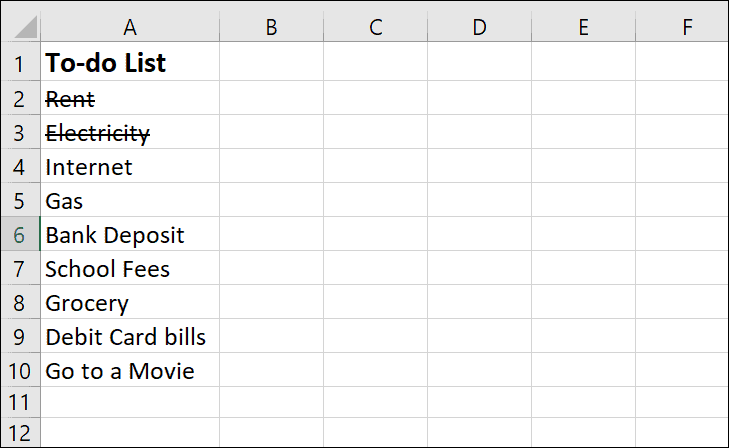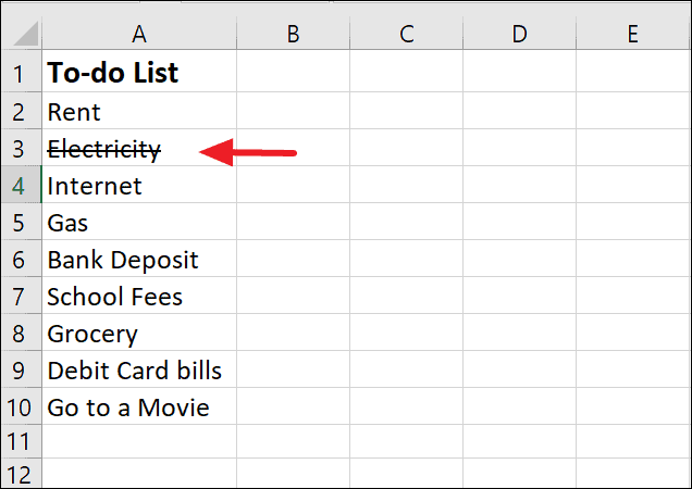 To use it, select the cells you want to format and click the strikethrough button on the ribbon.