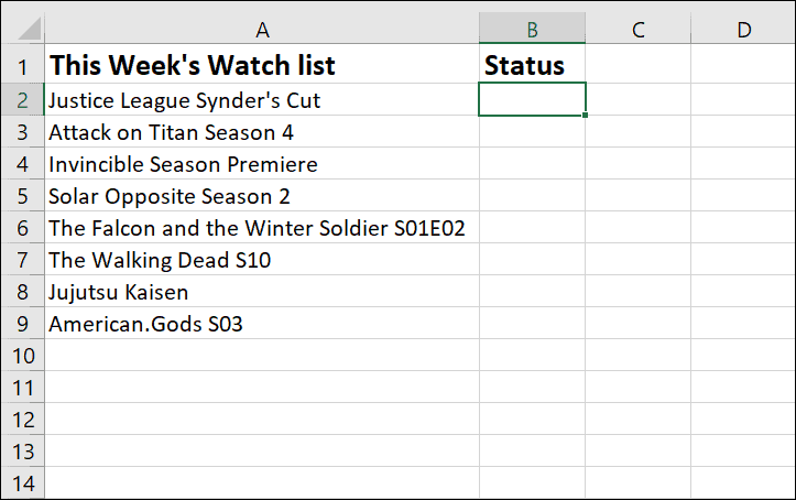 Step 1: Suppose you have a list of shows or tasks in column A and their status in column B. Select the cells in column A that you want to format.