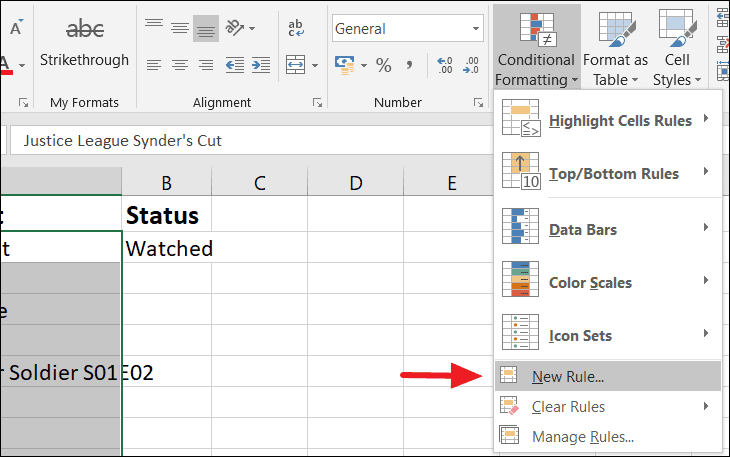 Step 2: Go to the 'Home' tab, click on 'Conditional Formatting' in the 'Styles' group, and choose 'New Rule...' from the drop-down menu.
