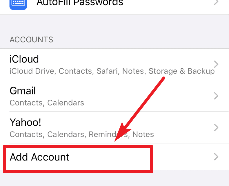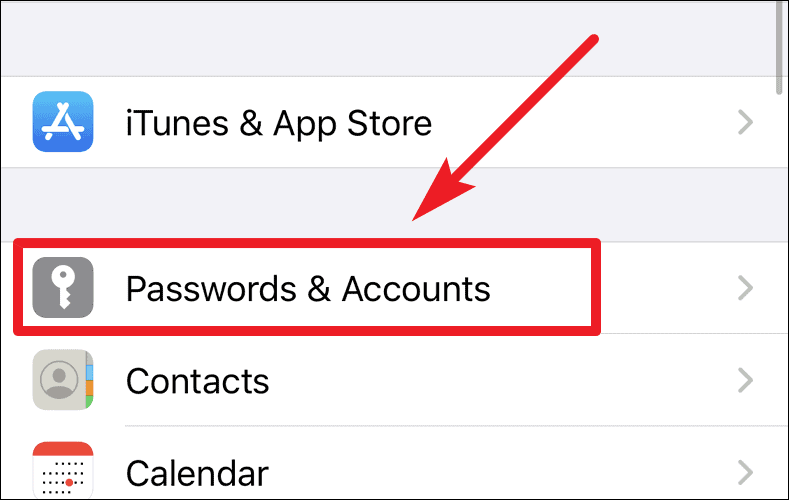 Go to the Settings of your iPhone. Scroll down and go to Passwords & Accounts.