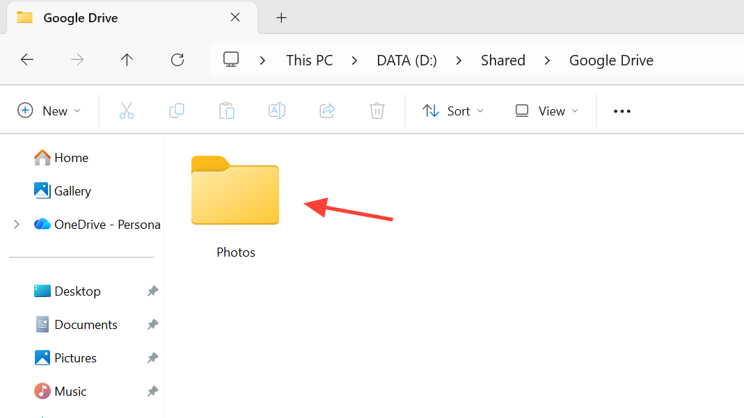 Step 6: Close the settings window to return to your main Drive view. At this point, a Google Photos folder should be part of your Drive structure, and it will be used later as the basis for syncing to Windows 11.