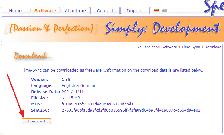 - Visit the Time-Sync download page and click on the Download button.