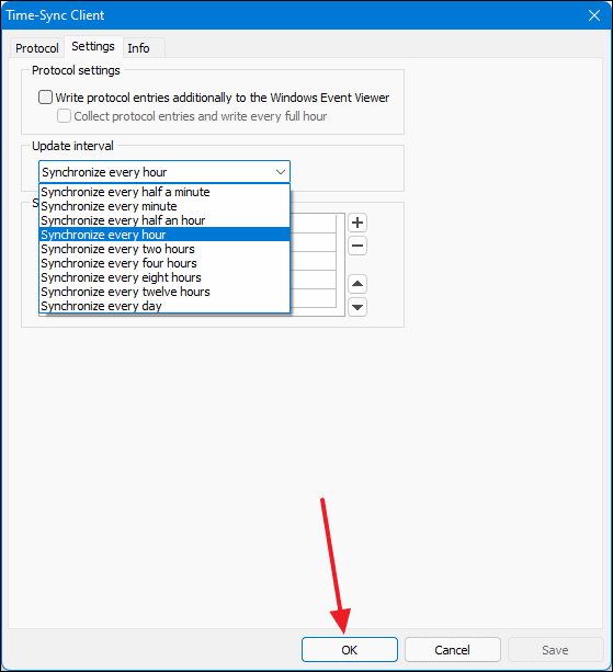 - Under the Update interval section, select your preferred synchronization interval from the dropdown menu, then click OK.