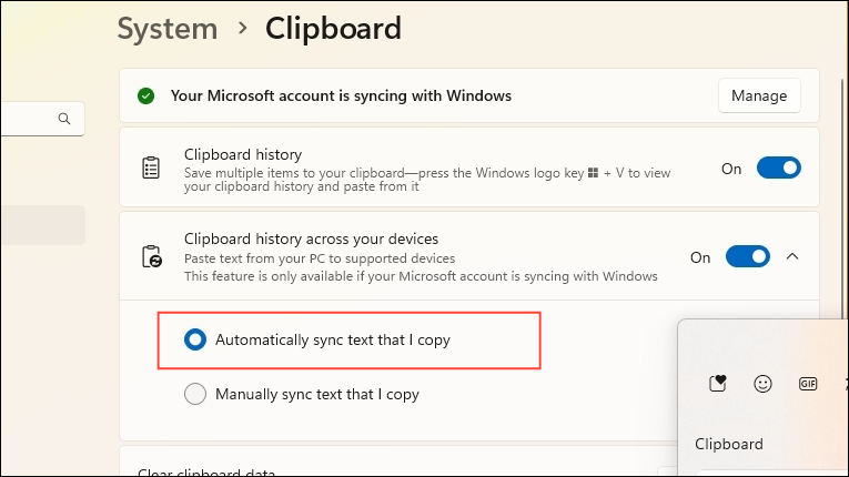 - Click on the 'Automatically sync text that I copy' option to select it.
