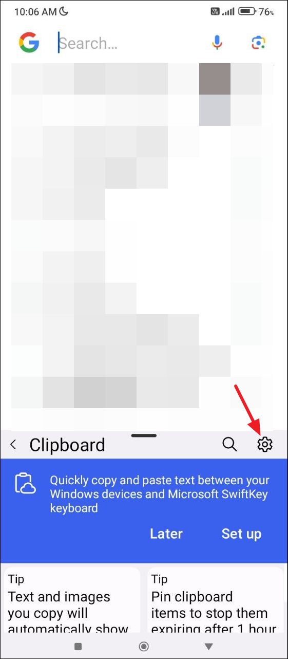 - Then tap on the gear icon on the right to access the clipboard settings.