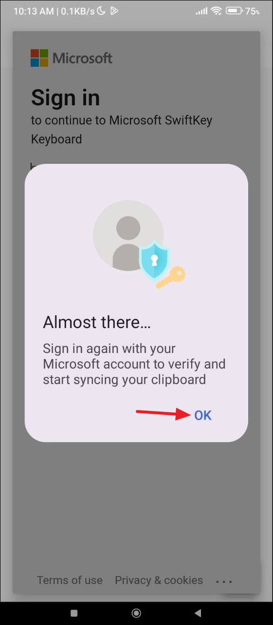 - If you were using the SwiftKey keyboard without a Microsoft account, you will see a message that you need to log in to sync the clipboard history. Tap on 'OK' and log in to your account to complete the process.