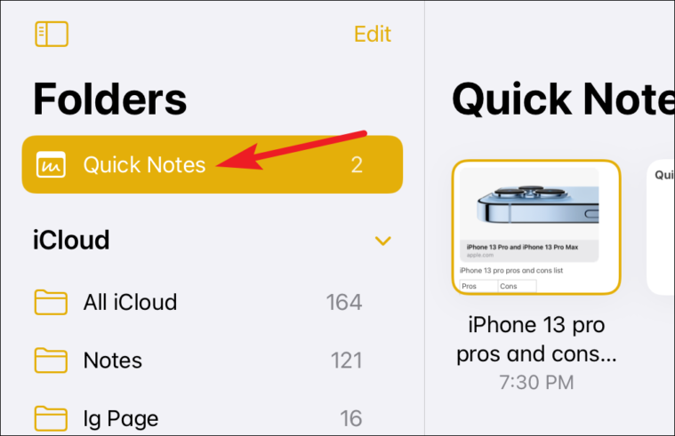 All your quick notes are also available in the ‘Quick Notes’ folder in the Notes app. You can access it from the Notes app itself.