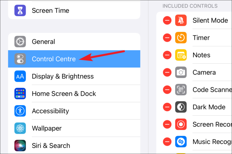 If trying to swipe seems too complicated, you can also access it from a more familiar place – the Control Centre. But this method requires an initial setup on your part as you have to add it to the controls included in the Control Centre. Open the Settings app on your iPad and go to the option for ‘Control Centre’.