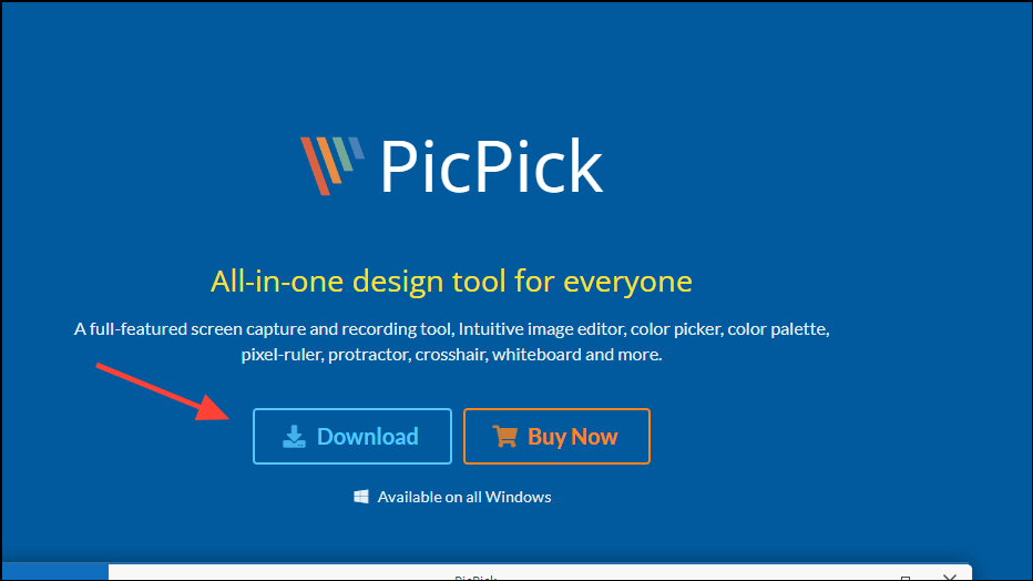 - PicPick is a multipurpose tool that you can use for free to take screenshots. Visit the website and click on the 'Download' button to download it.