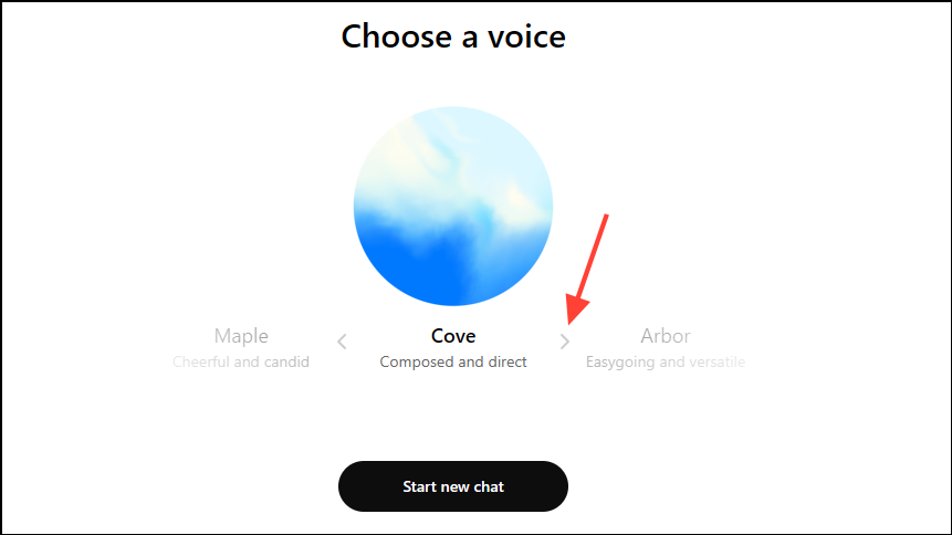 - Now, you will see the available voices for ChatGPT. Click on the arrow on the right to change the voice.