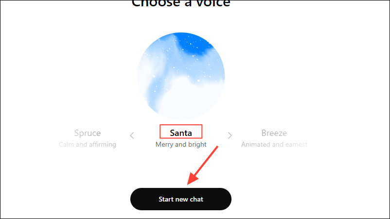 - Continue switching the voice until you reach the 'Santa' voice. Then click on the 'Start new chat' button.