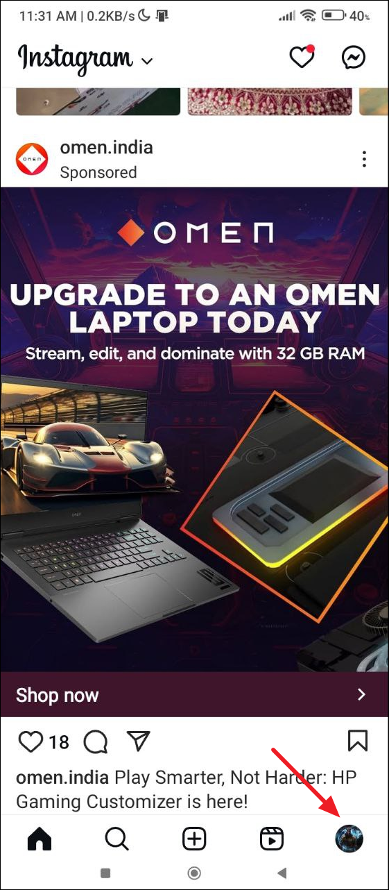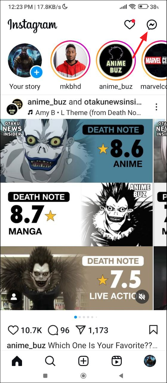 - Go to the Instagram homepage and then tap on the 'Messages' icon at the top right.